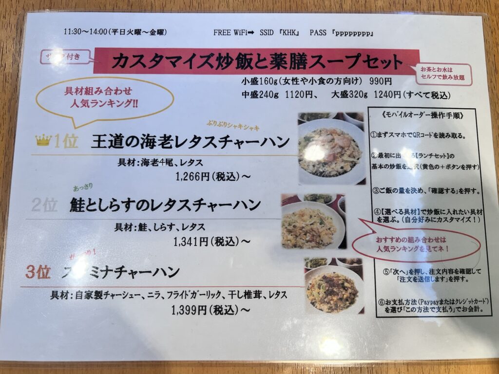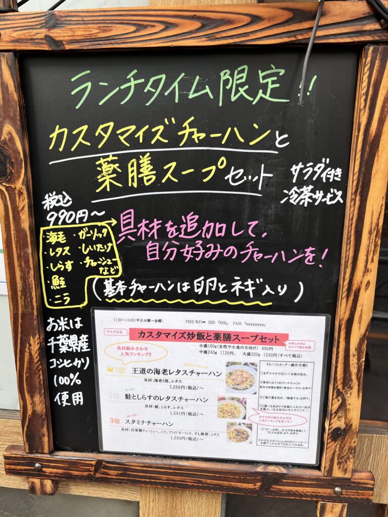 ランチは「カスタマイズ炒飯と薬膳スープセット」の一本勝負。