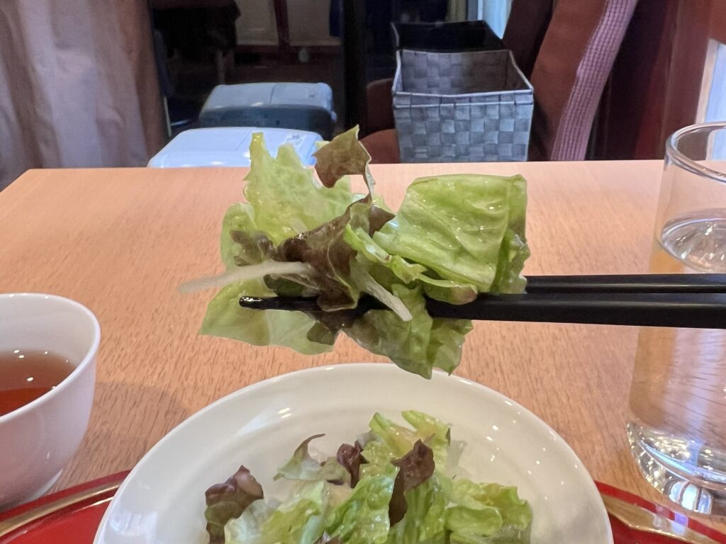 サラダは爽やかな酸味のドレッシングで、合間にちょうどいい箸休め。