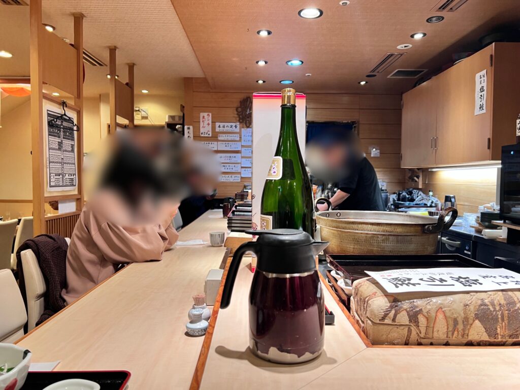 今回は、板前さんの調理が目の前で見られるカウンター席へ。